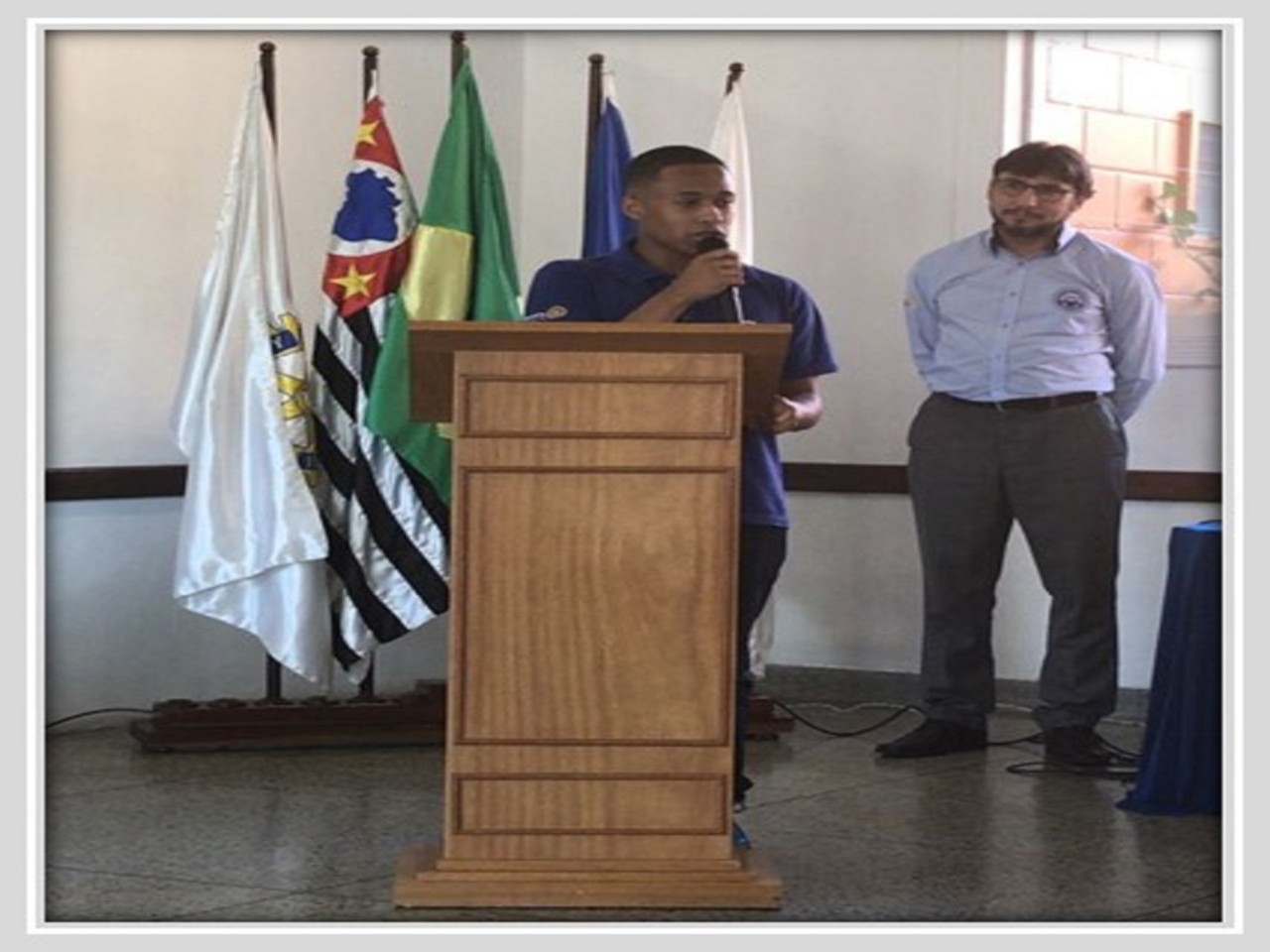João Victor de Souza foi o orador da turma de formandos. Ao seu lado o educador do CPMSA Reinaldo Nunes.