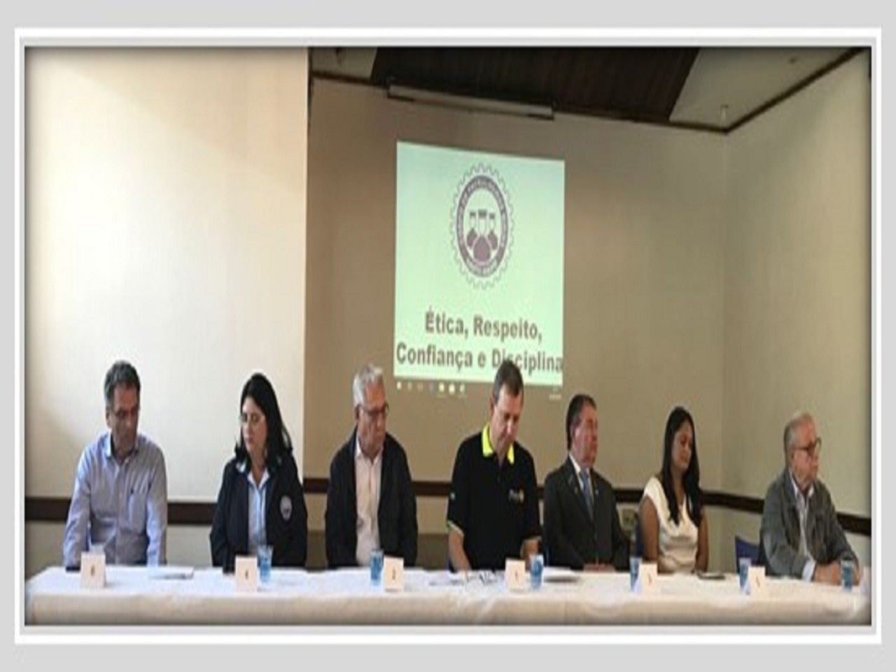 O presidente do CPMSA, Gustavo Vallejo (ao centro) presidiu a cerimônia acompanhado de Flávio Mendes ? Diretor do CPMSA, Vanesa Kern de Godoy ? Coordenadora Pedagógica e Administrativa do CPMSA, José Claudio Poletto ? Presidente do Conselho Deliberativo do CPMSA, Jaime Guedes de Souza, Presidente do RCSA A.R. 2017-2018, Daniela Macedo ? Representantes das Empresas e Gestores e José Bueno Lima membro do Conselho Deliberativo do CPMSA.