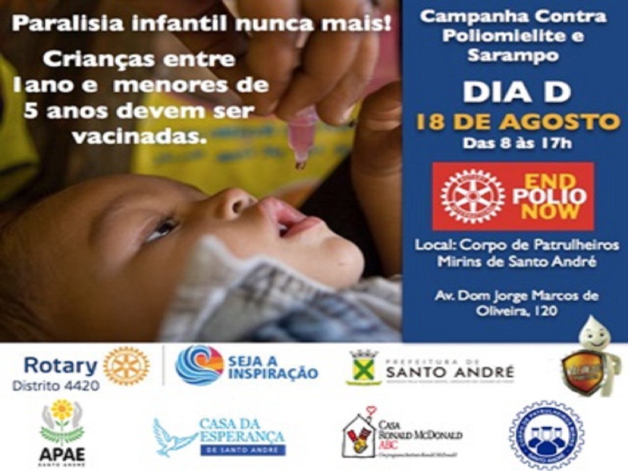A assinatura do termo de cooperação uniu os 8 clubes da cidade. O termo de cooperação consolida a criação de um posto adicional de vacinação no dia 18/8 no Corpo de Patrulheiros Mirins de Santo André, que cederá o espaço e já tendo sido visitado pela secretaria de saúde do município, aprovando o local. A secretaria de saúde enviará pessoal e material para aplicação das vacinas, enquanto os companheiros ajudarão durante todo o dia na organização e bom andamento da campanha.