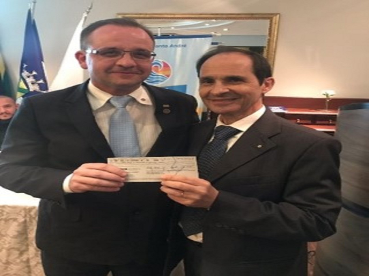 Recebeu das mãos de José Carlos, 1º Tesoureiro A.R. 2018-2019 o cheque com os valores referentes a participação dos associados do clube no evento.