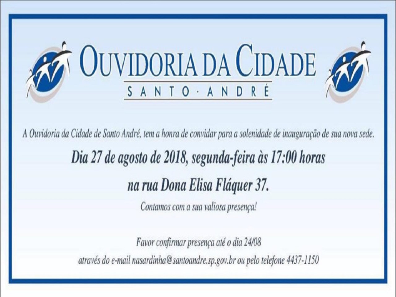 Claudio Bretas, presidente A.R. 2018-2019 comunicou e convidou a todos os presentes na última reunião para a inauguração, no último dia 27, da nova sede da Ouvidoria da Cidade de Santo André.