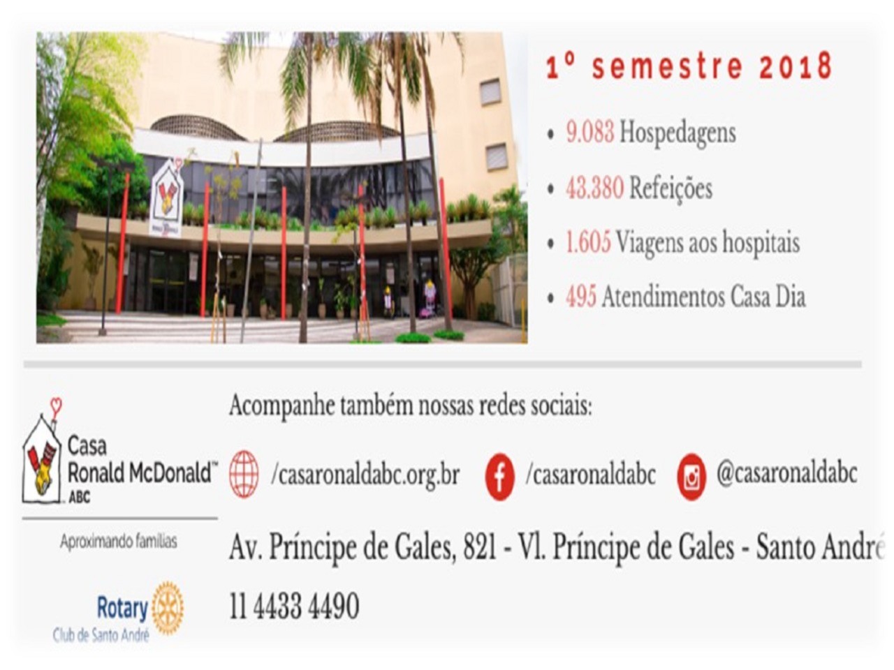 Publicado no #ENTREAMIGOS edição 05, setembro de 2018 da Casa Ronald McDonald ABC, compartilhamos para todos os leitores deste boletim números da entidade referente ao 1º semestre de 2018.