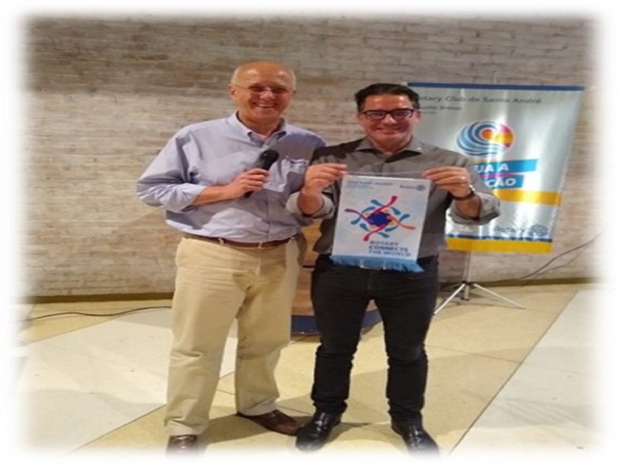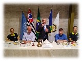 Durante a apresentação Mario Cesar entregou a flâmula com o símbolo rotário da A.R. 2019-2020 ao companheiro e presidente eleito A.R. 2019-2010 Marcio Moreti. Ao final vários companheiros fizeram perguntas ao Mário César, sendo prontamente respondidas.