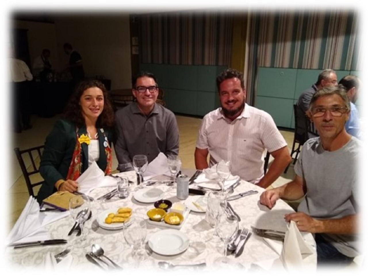 Plateia atenta às mensagens e ao conteúdo apresentado em noite de jantar com vários convidados.