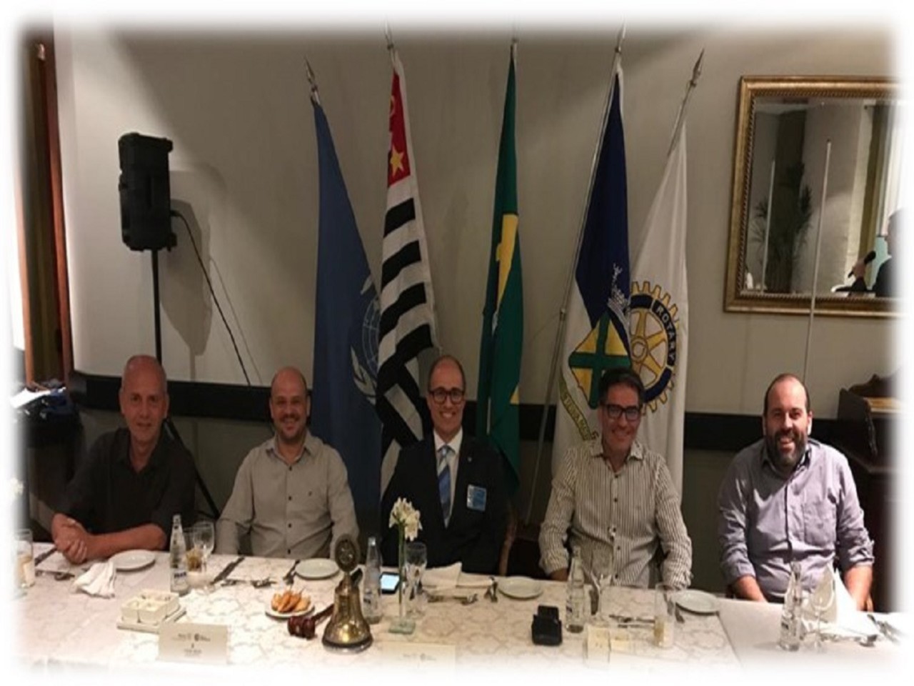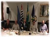Mesa do Presidente composta por, Claudio Bretas, presidente A.R. 2018-2019, ao centro. Ao lado direito Marcio Moreti, presidente eleito A.R. 2019-2020 e Herminio Cabral de Rezende Junior, companheiro recém empossado em Dezembro/2018. Ao lado esquerdo, Paulo Magri 1º secretário A.R. 2018-2019 e Luis Cesar Sencine Almiñana.